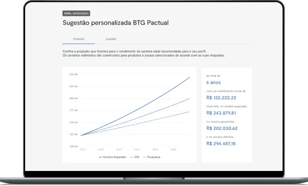 Com o Simulador de Investimentos, você pode acessar uma carteira de investimentos com recomendações totalmente personalizadas de acordo com o seu perfil de investidor, a sua tolerância ao risco e os seus objetivos. Assim, é possível tomar decisões de investimento mais inteligentes e adequadas.